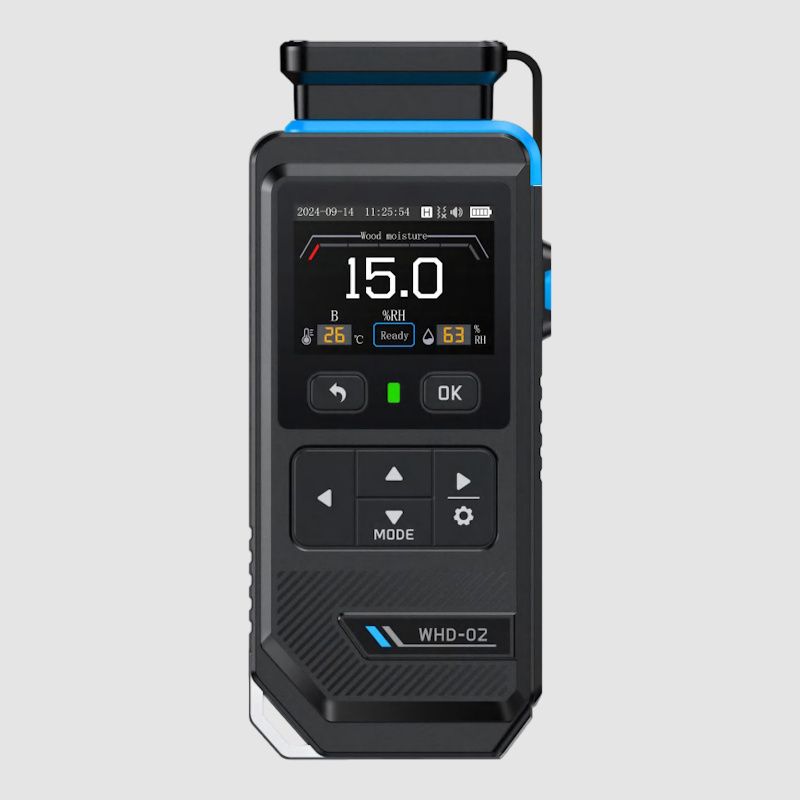 Fnirsi WHD-02 Pin-Type (Stab-Type) Material Moisture Meter is a precise pin-type moisture meter that uses dual stainless steel probes for fast and accurate readings, enabling real-time measurement of wood moisture content. It supports seven calibration groups (A–G) for different wood densities, ensuring consistent results across various materials. The device features a 2" high-resolution color display, offering an integrated environmental monitoring feature by simultaneously displaying ambient temperature and humidity. It is ideal for lumber processing, construction, flooring, and furniture manufacturing, ensuring process stability and quality consistency.