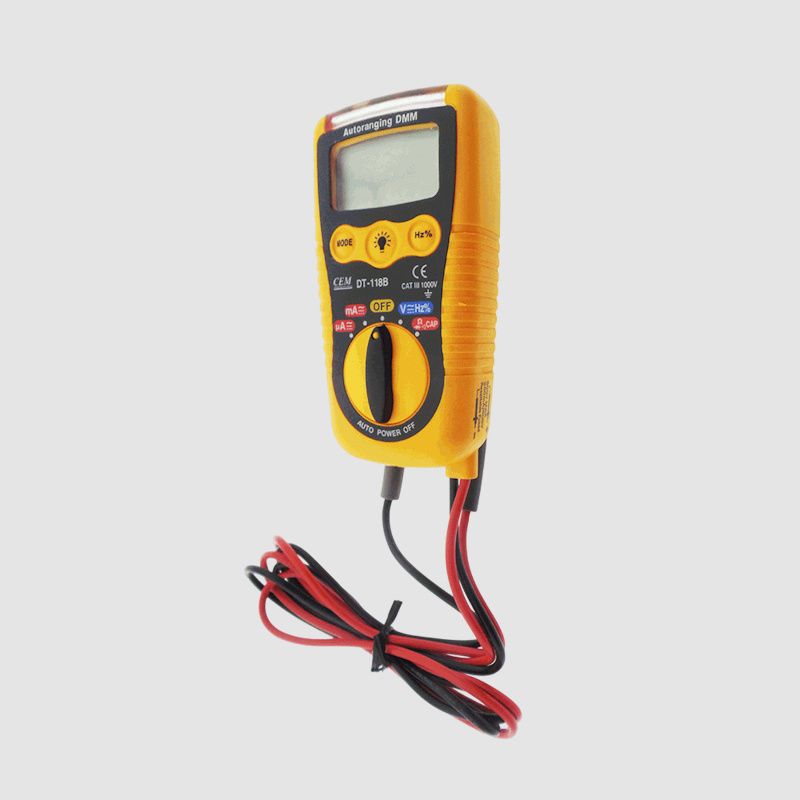 The CEM DT-118B Pocket-Sized Digital Multimeter provides all the measurements you need in a pocket-sized format. Its large 4,000-digit LCD display makes readings easy to read.