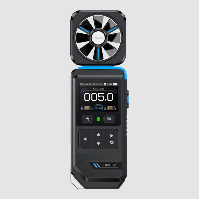 The Fnirsi FAM-02 Anemometer (Wind Speed Meter) is a high-precision propeller anemometer featuring a compact and efficient design. It quickly displays wind speed, temperature, and humidity measurements on a single screen. Designed to provide reliable performance at an affordable price, the device also features data logging for easy monitoring and analysis. Equipped with a 2" high-resolution display, the device offers light and dark interface modes, making it suitable for monitoring a wide variety of indoor and outdoor environments. It is ideal for field applications and routine environmental assessments.