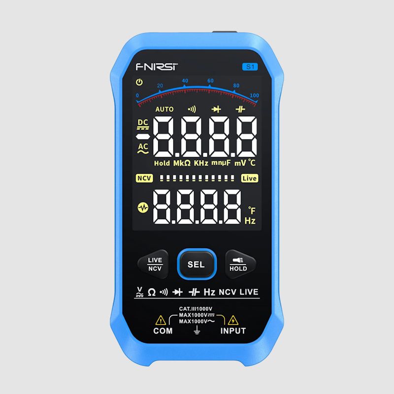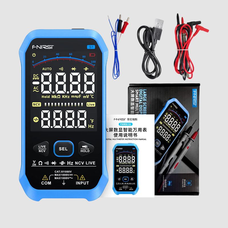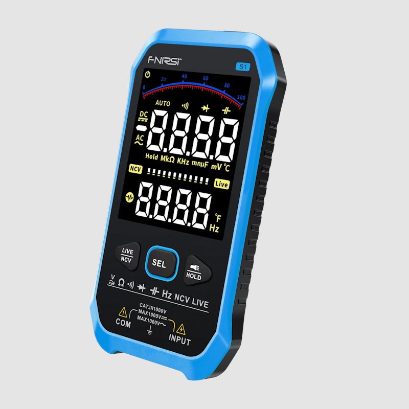 The Fnirsi S1 Wide Screen Smart TRMS Digital Multimeter offers ease of use with its wide screen design and superior features. You can perform many measurements with a single device, smoothly and with high accuracy.